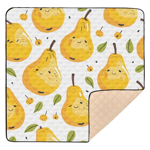 SyXIOP Cartoon and Cute Yellow Pears Soft Foam Baby Play Mat for Floor Cozy Breathable foldable Infant Play Mat for Baby Kids Toddlers Infants, 50'' x 50''