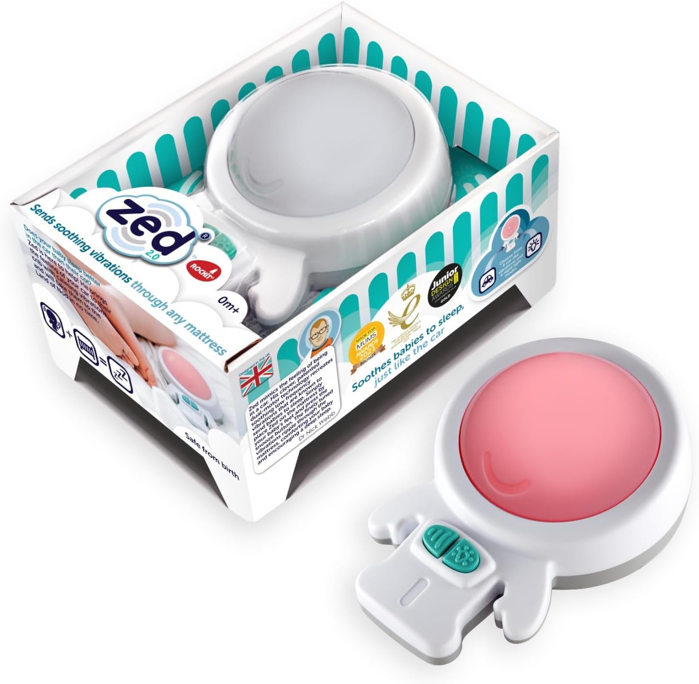 Rockit Zed 2.0 - Baby Vibration Sleep Aid & Red Night Light | Portable Infant S