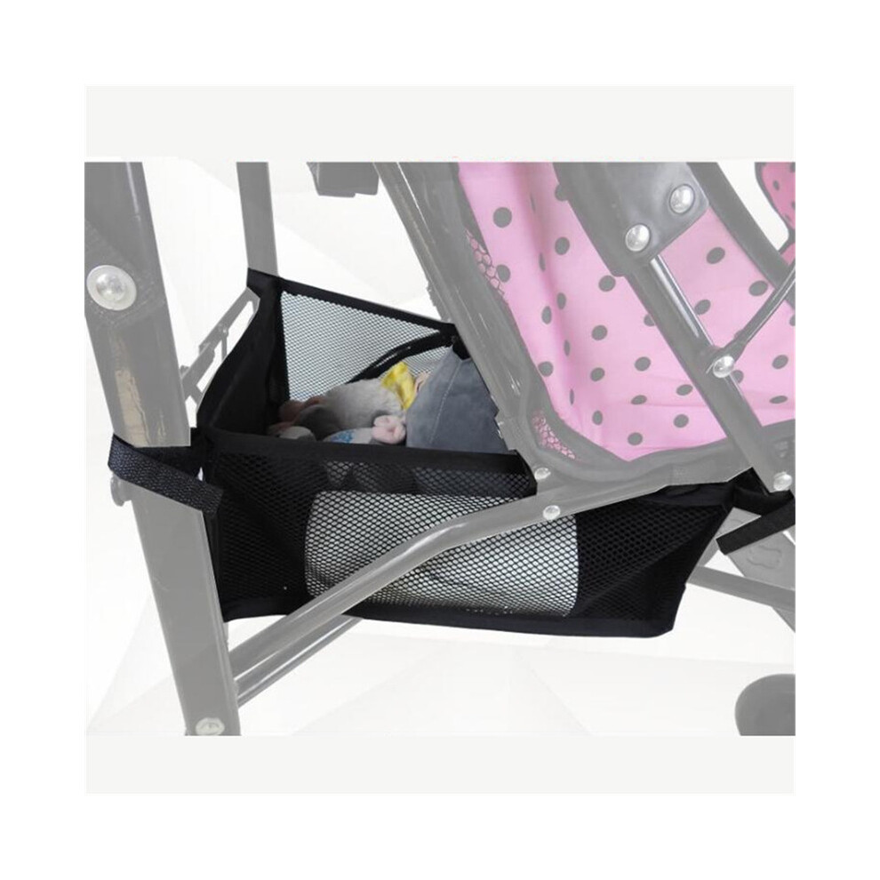 POPETPOP 2pcs Baby Stroller Bottom Pouch Large Capacity Mesh Storage Basket Organizer Bag for Pushchair Pram Under-basket Storage Black, Suitable for Infant Strollers and Shopping