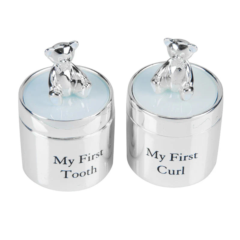 Bambino Silverplated First Tooth & Curl Set Blue Keepsake Infant Memory