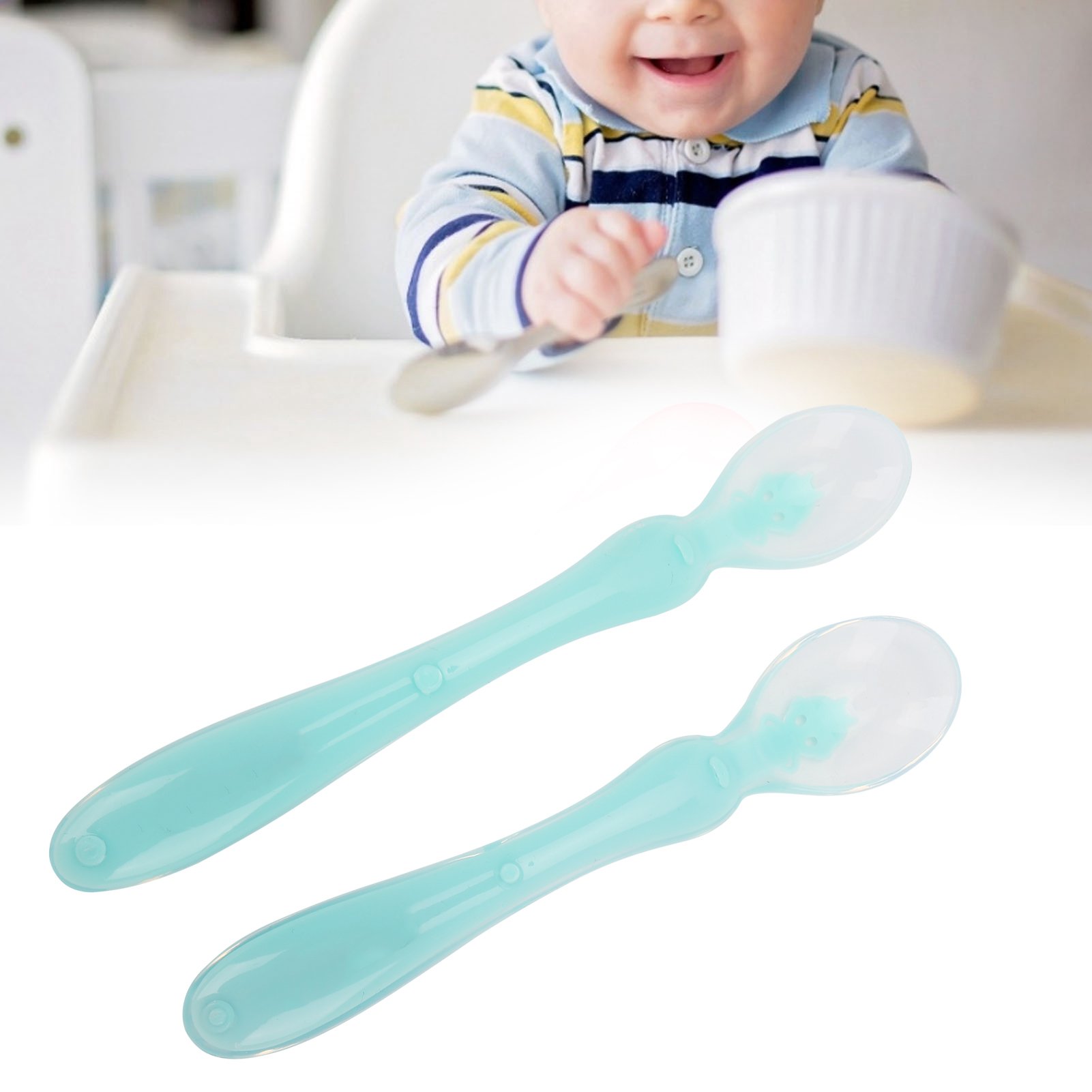 Infant Feeding Spoon Set Baby Soft Tip Color Changing Head Spoons Baby Soft Sili