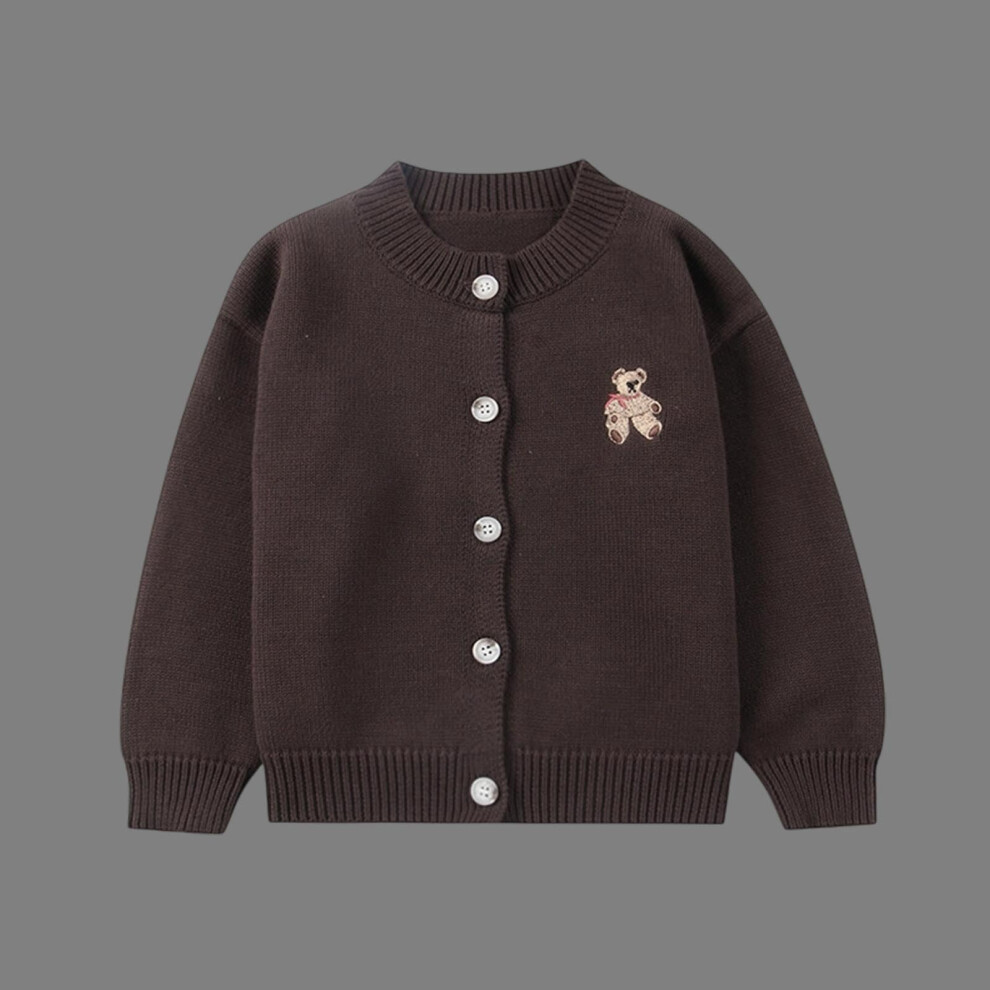 Infant 18 Months Coffee Cardigan - Soft Cotton Button-Up with Teddy Bear Embroidery, Machine Washable for Daily & Outings