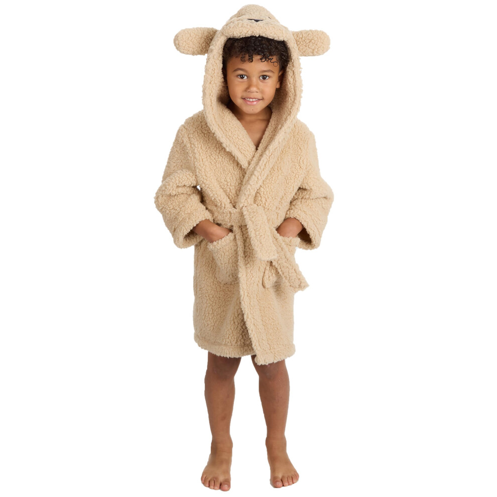 (Beige Puppy, 3-4 Years) Kids Infant Boys Girls Unisex Teddy Bear Puppy Novelty Dressing Gown Snuggle Fleece Size 2-13 Years