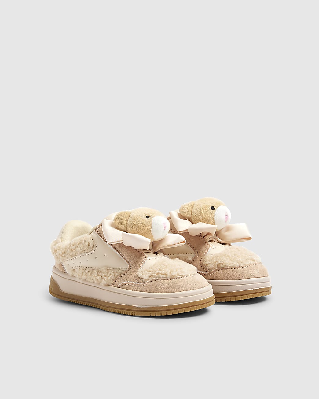 River Island Baby Mini Girls Trainers Beige Teddy Bear Pu - Size UK 7 Infant