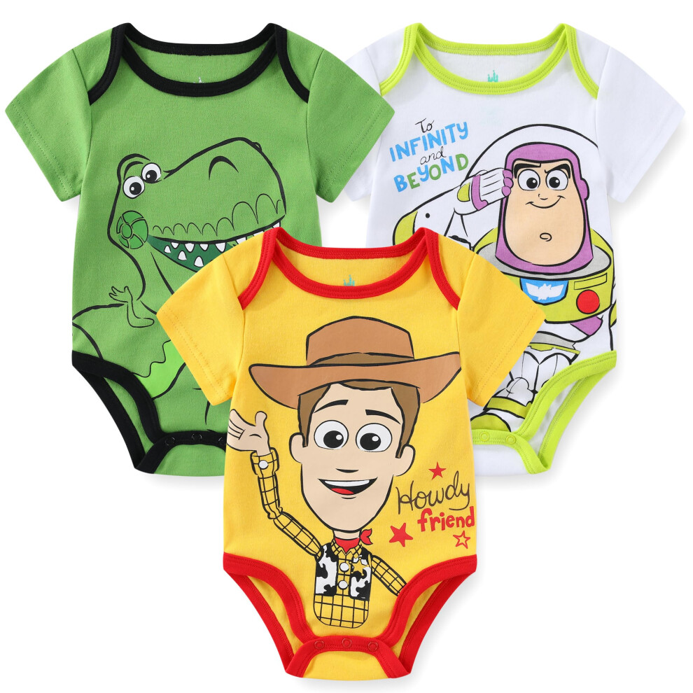 Disney Baby Toy Story Mickey Mouse Cars Winnie the Pooh Boys 3 Pack Bodysuit Creeper for Newborn and Infant