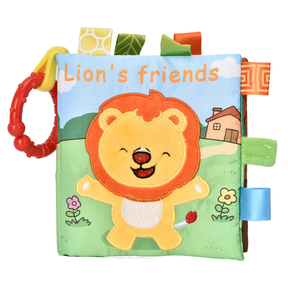 (Lion)Baby Soft Cloth Story Book Infant Rattles Book Toy Early Educational OU