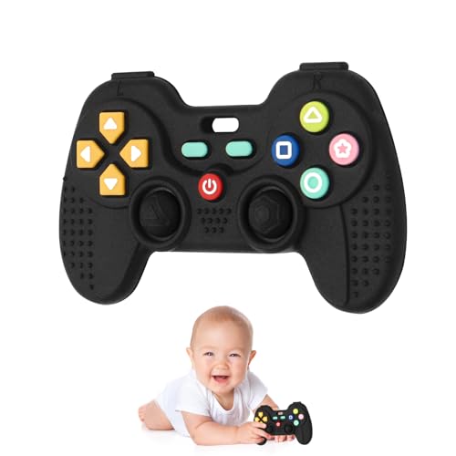 Hooku Silicone Teethers for Babies 0-6 Months, Teething Toys for Babies 6-12 Months, Baby Remote Control Toy, Infant Toys 0-3 Months, Sensory Chew Toys, Toddler Newborn Baby Gifts (Black)