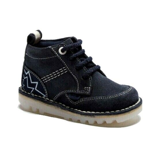 New Kickers Infant Boys Kick Glow Boot Suede Boots Navy/White Inf UK 8 EUR 25