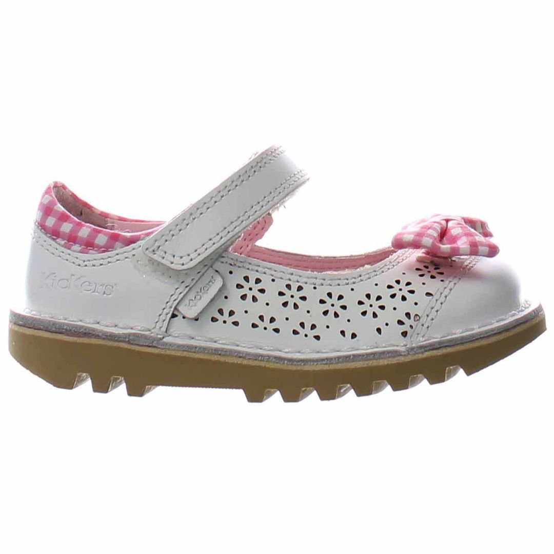 Kickers Childrens Unisex Kick Bowtie 2 Kids White Shoes Leather - Size UK 8 Infant