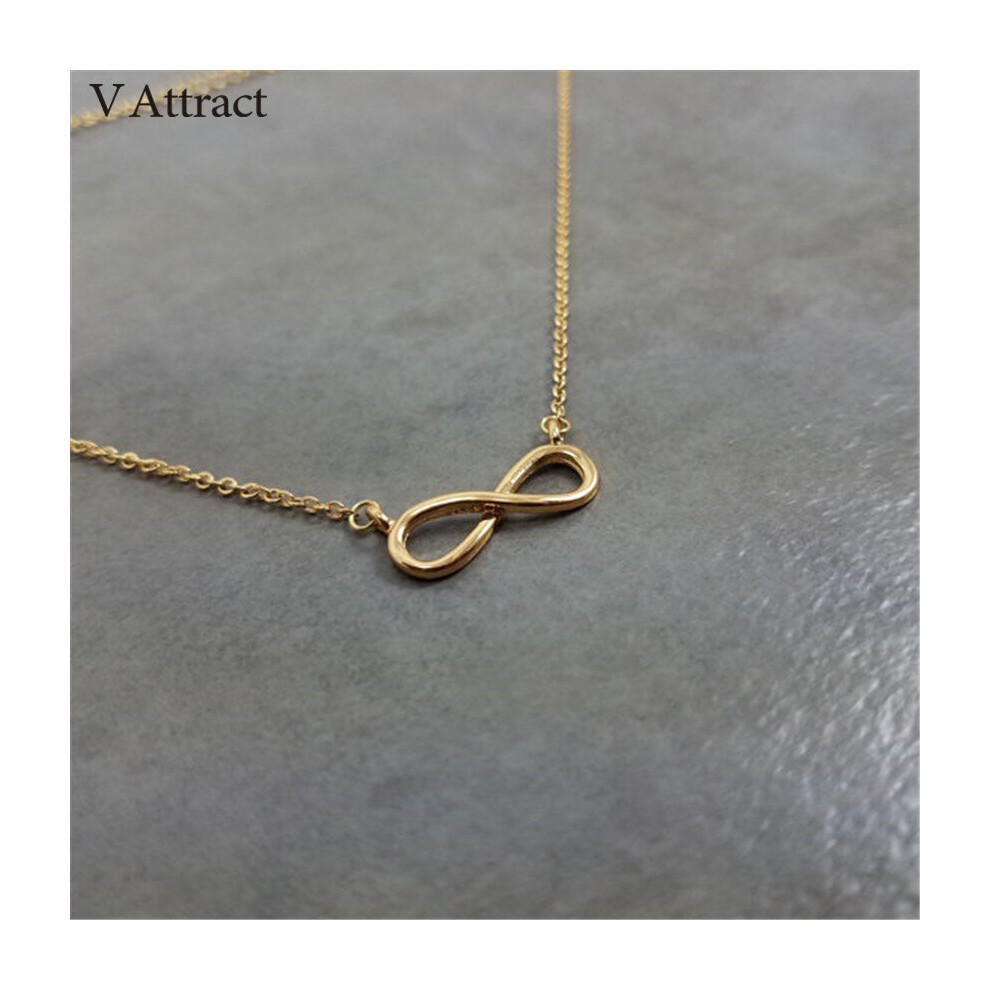 V Attract Stainless Steel Long Chain Collares Femme Vintage Jewelry Infinity Necklace for Women Bijoux