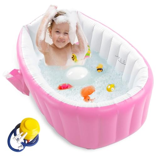 Inflatable Baby Bathtub ,Portable Inflatable Baby Bathtub - Non-Slip, Foldable Design with Air Pump - Essential Travel Bath for Newborns (Pink)