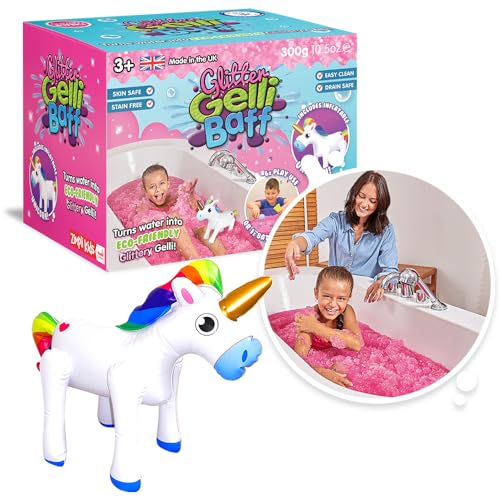 ZIMPLI - Glitter Gelli Baff Pink with Inflatable Unicorn, 1 Bath or 6 Play Uses, Magically turns water into thick, colourful goo, Multi-Sensory Bath Toy