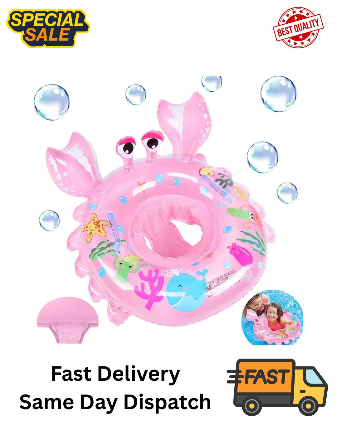CYCFMYYLY Baby Swimming Float, Inflatable Ring, Swim Bath 55cm, Crab Pink | UK