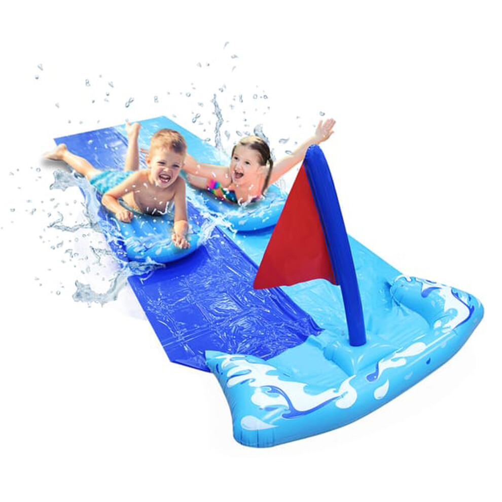 Inflatable slide with water