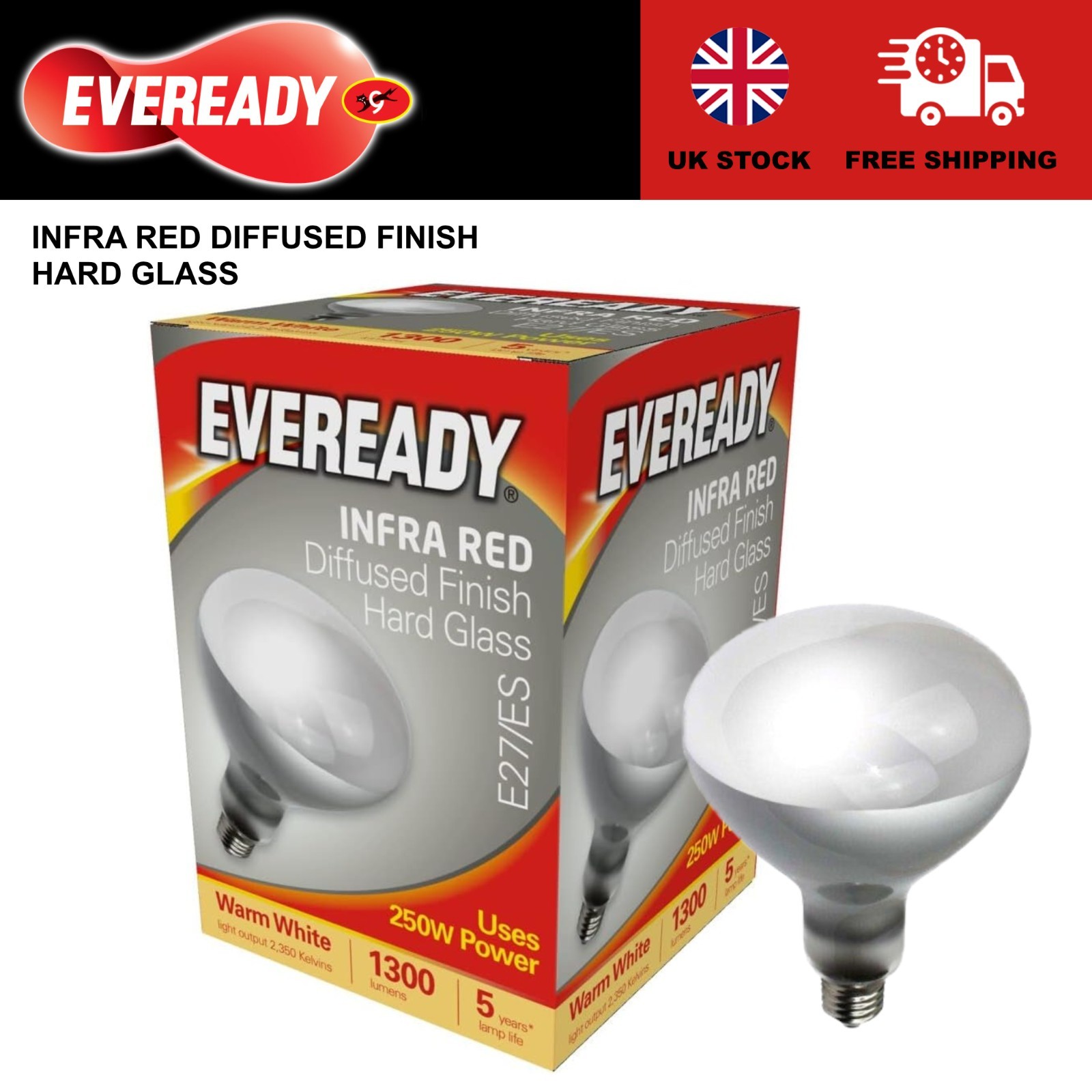 E27 Heat Lamp Bulb Infra Red Hard Glass Diffused Finish ES by Eveready 250W ES