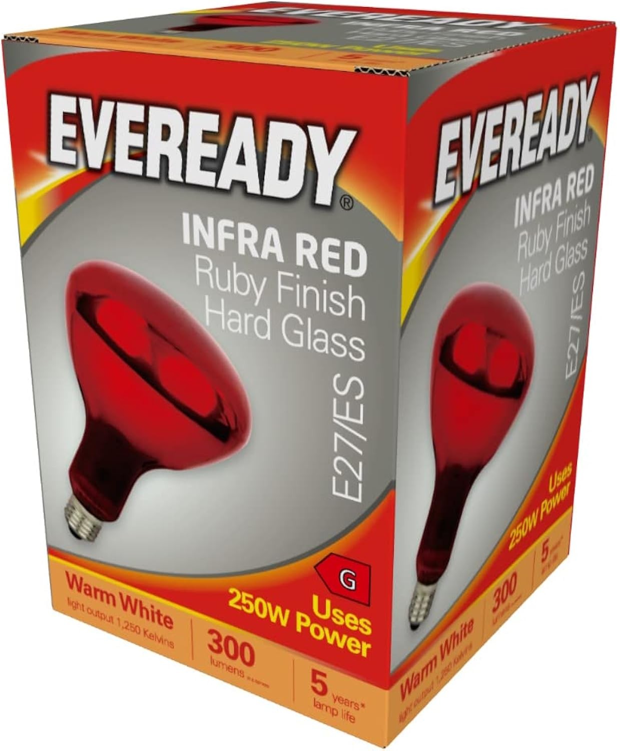 Eveready 250W E27 Ruby Red Infrared Heat Lamp Bulb for Reptiles & Poultry
