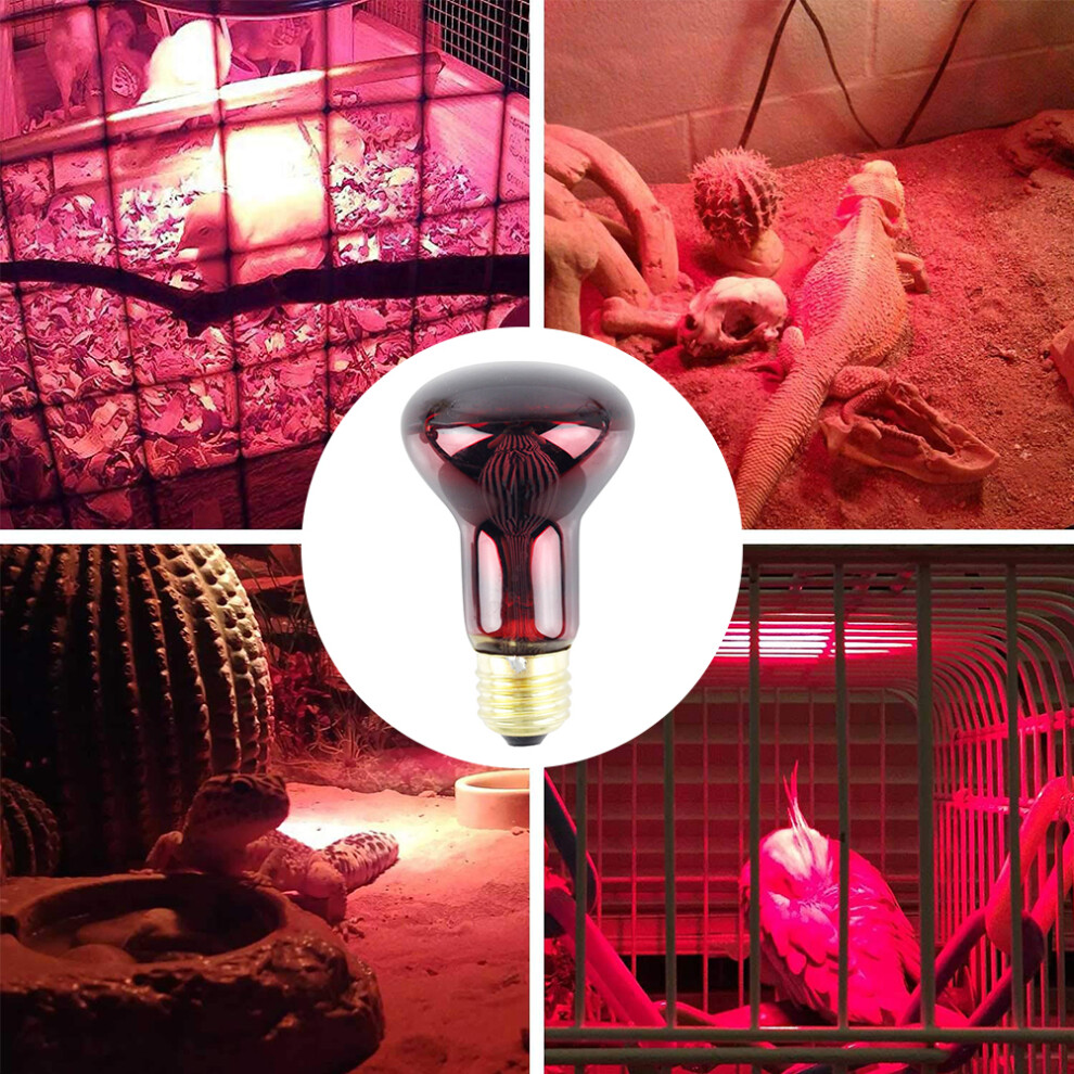 60W Infrared Red Light Heat Lamp for Reptiles, Amphibians, 63x100mm