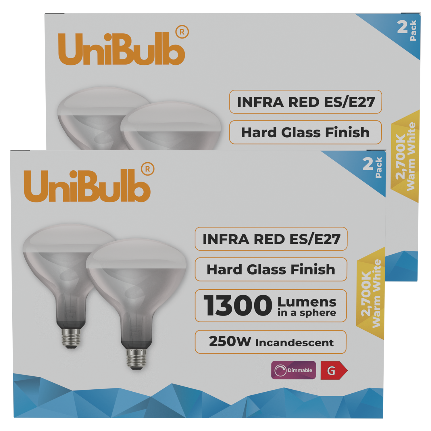UniBulb 250W Heat Lamp Bulbs R125 Infra Red ES Fitting – 2 Pack