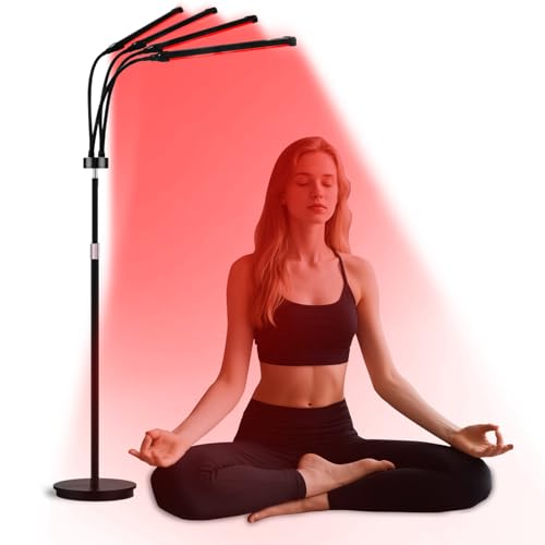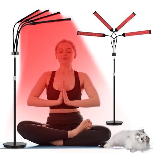 Trayvespace Red Light(660NM & 850NM & 940NM), 180LEDs Floor Red LED Lamp with 4 Heads, Near Infrared Light with 10/20/30Min Timer, Infrared Lamp for Home Use
