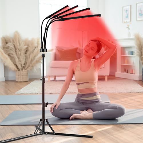 Trayvespace Red Light, 660NM & 850NM Infrared Lamp with Stand, 4 Heads Red Light Lamp with Timer & Brightness Adjustable for Home (Black)