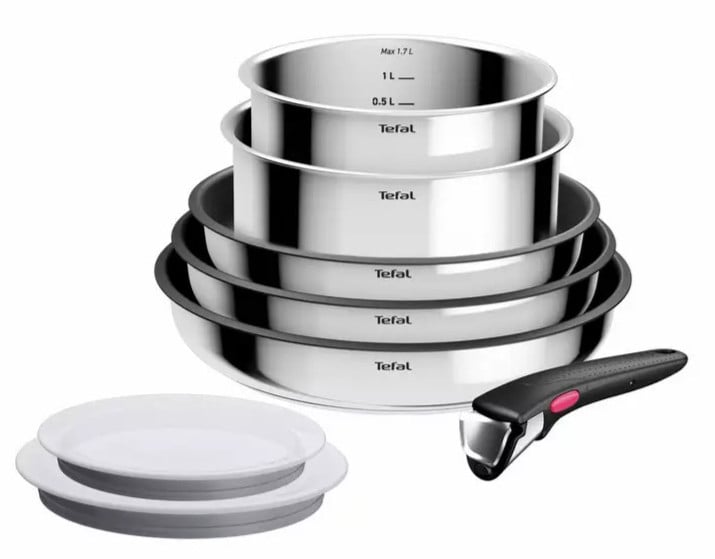 Tefal Ingenio 8 Piece Stainless Steel Pan Set Induction Emotion Cook & Eat