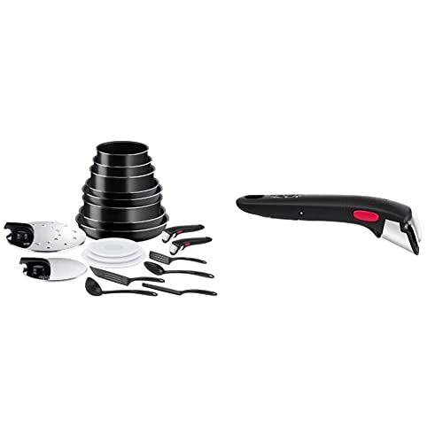 Tefal Ingenio Easy ON Pots & Pans Set, 20 Pieces, Stackable, Removable Handle, Space Saving, Non-Stick, Black, L1599402 & Ingenio Black Handle, Stackable, Removable, L9863342