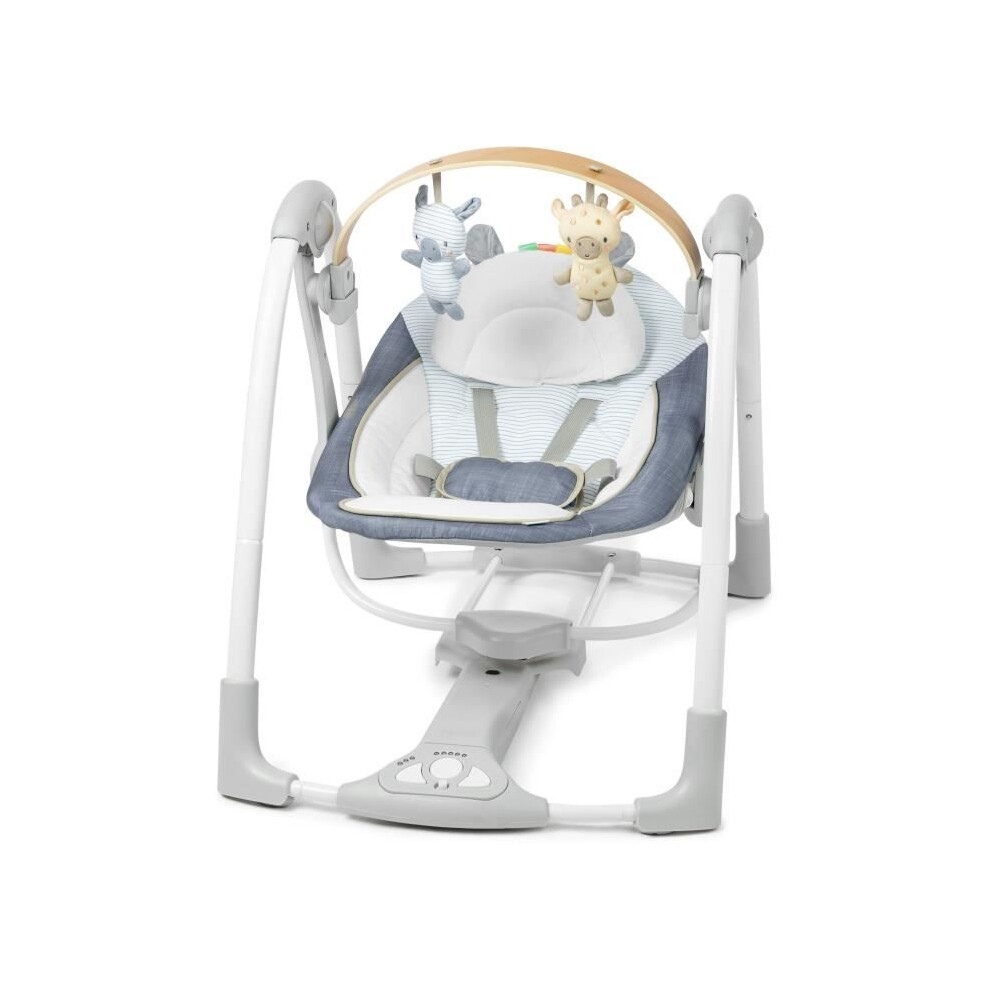 INGENUITY Portable Electric Baby Swing – Chambray, baby gift, 5 swinging speeds, 8 melodies