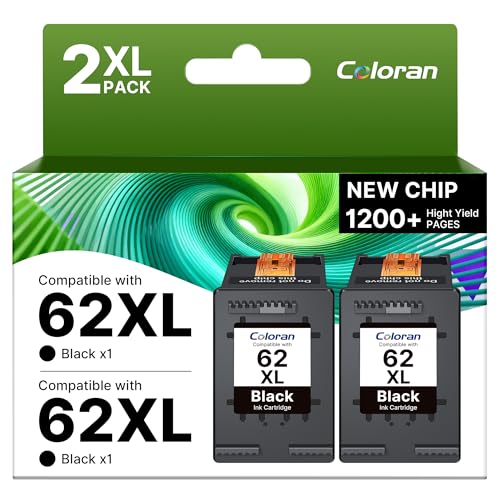 Coloran 62XL Black Ink Cartridges for HP 62 XL, Compatible for Envy 5540 5541 5542 5543 5544 5545 5546 5547 5548 5640 5642 5644 7640 OfficeJet 200 250