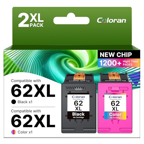 Coloran 62XL Ink Cartridges, for HP 62 XL Black and Tri-color, Compatible for Envy 5540 5541 5542 5543 5544 5545 5546 5547 5548 5640 5642 5644 7640 OfficeJet 200 250 5740 5742 5744(2-Pack)