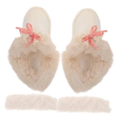 UPKOCH Thick Plush White Shoes Liner with Removable Heel Covers and Pompoms Warm Breathable Inner Soles for Winter Boots Slippers and Outdoor Use