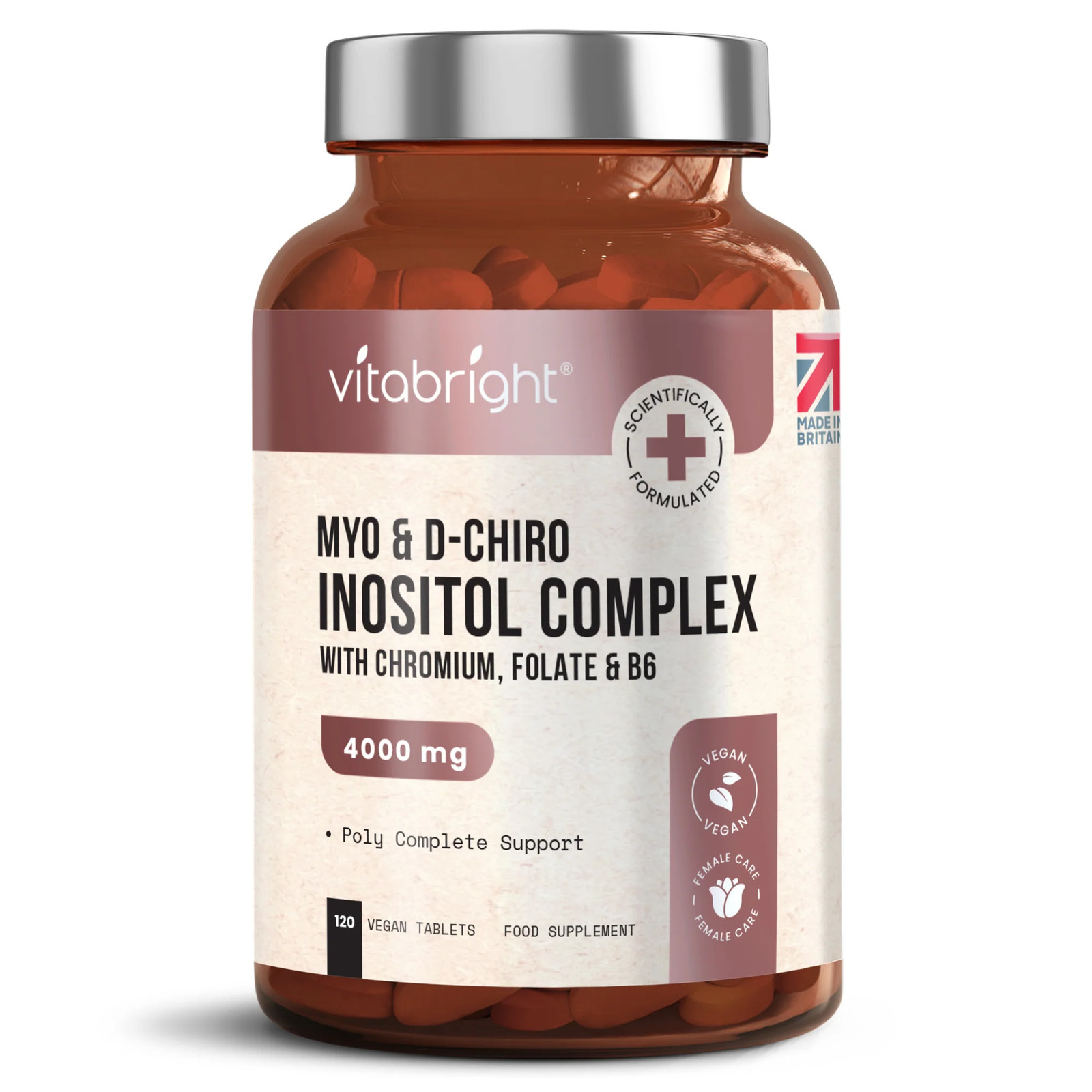 VitaBright Myo-Inositol D-Chiro-Inositol Tablets | 4000mg A Day | 120 Chewable Tablets | Contribute to Hormone Balance for Women | D Chiro & Myoinositol (Vitamin B8) with Chromium, B6 & Folic Acid