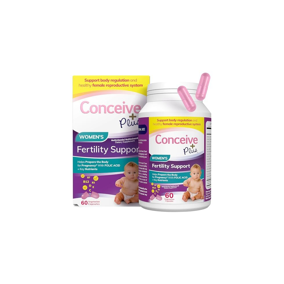 Conceive Plus Women's Fertility Support, 60 Caps, 30 Day Supply: Calcium and Vitamin D Tablets, Energy Tablets, Folic Acid, Inositol for Normal