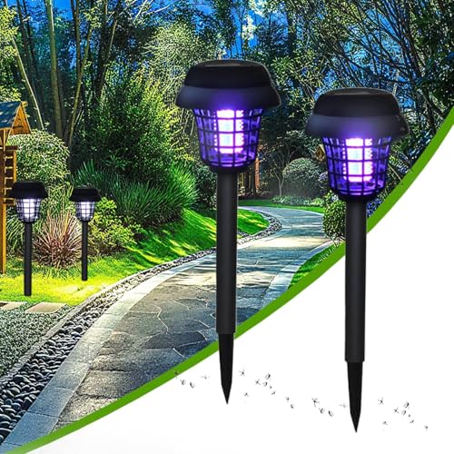 Solar Mosquito Killer Lamp, Multi-Function Insect Killer Lamp, Garden Lawn Lamp, White Light Illumination + Ultraviolet Mosquito Control, Waterproof Design (2-Piece Set)