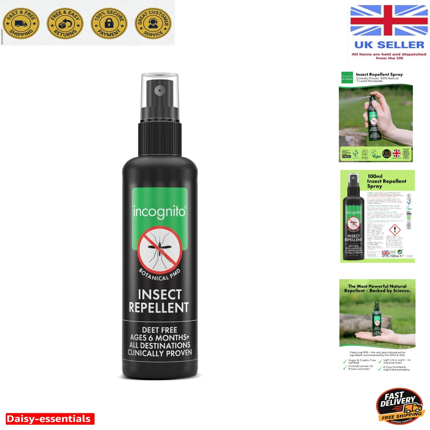 Incognito Insect Repellent Spray, 100ml - Natural DEET Free, Shields from Wide Range of Biting Insects. Clinically proven protection from Ticks & Dengue carrying mosquitoes, Organic Mosquito Repellent