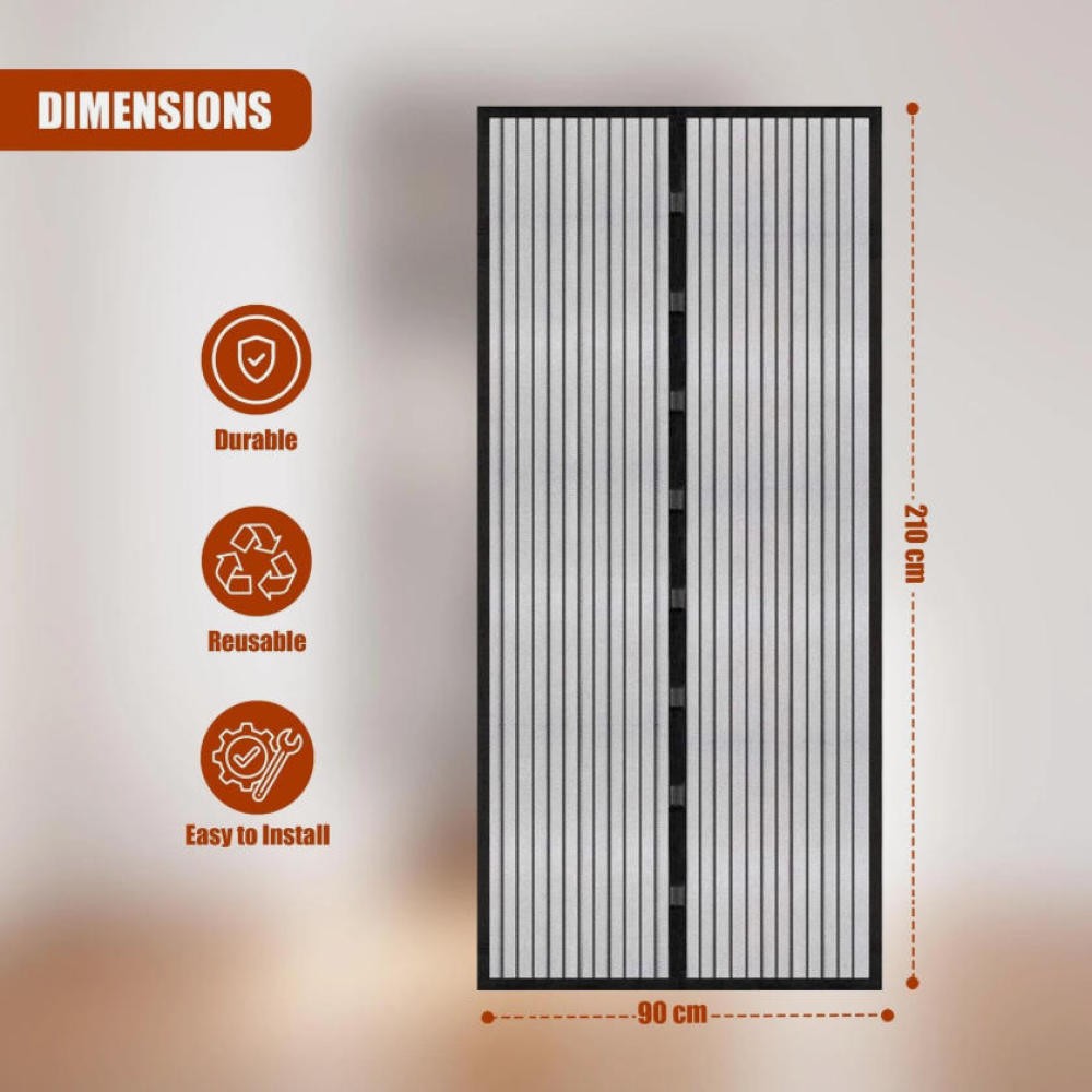 90 x 210CM Magnetic Door Screen Fly Insect Screen Mesh Door Curtain ToptoBottom Seal Shuts Automatically Easy to Install Without Drilling Black