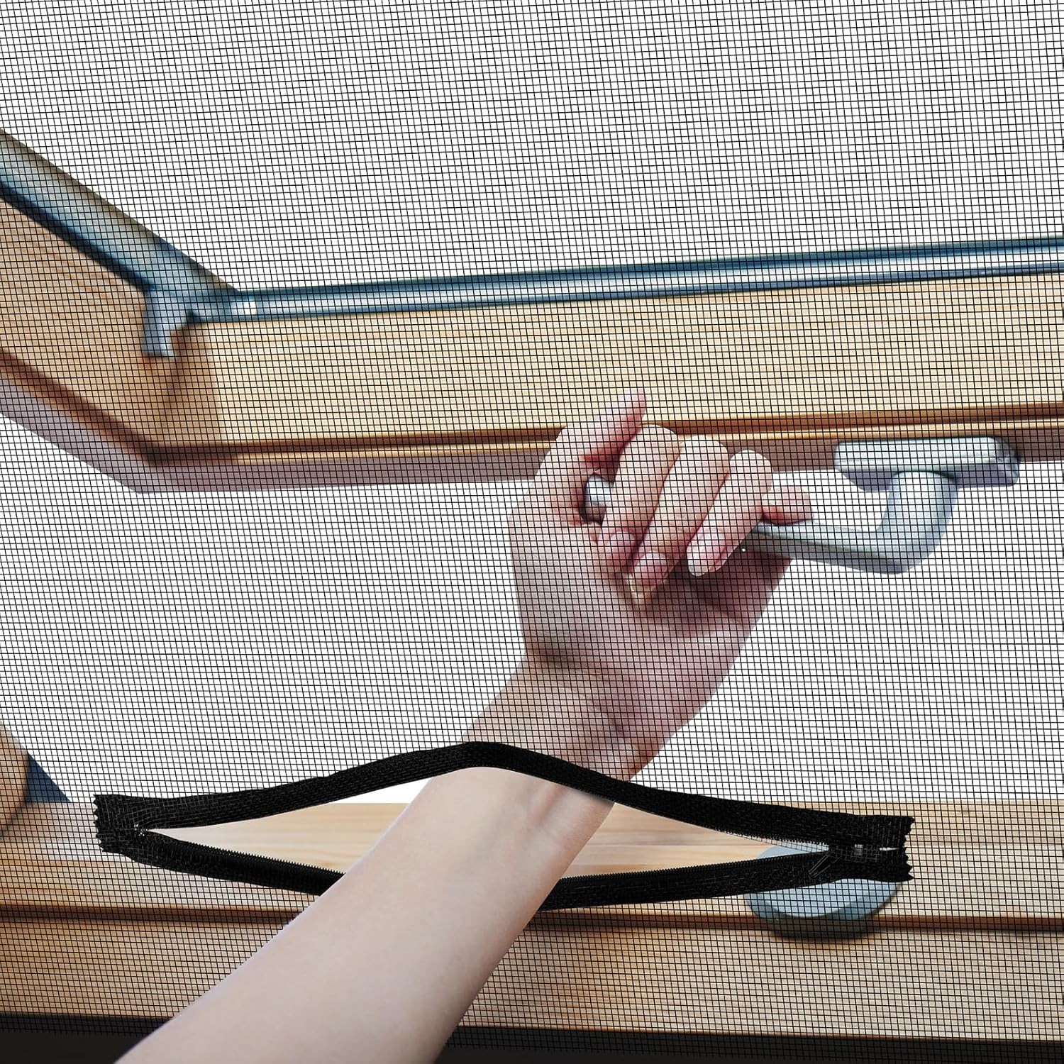 Flintronic Insect Fly Window Screen with Zipper Opening, 130x150cm Self-Adhesiv
