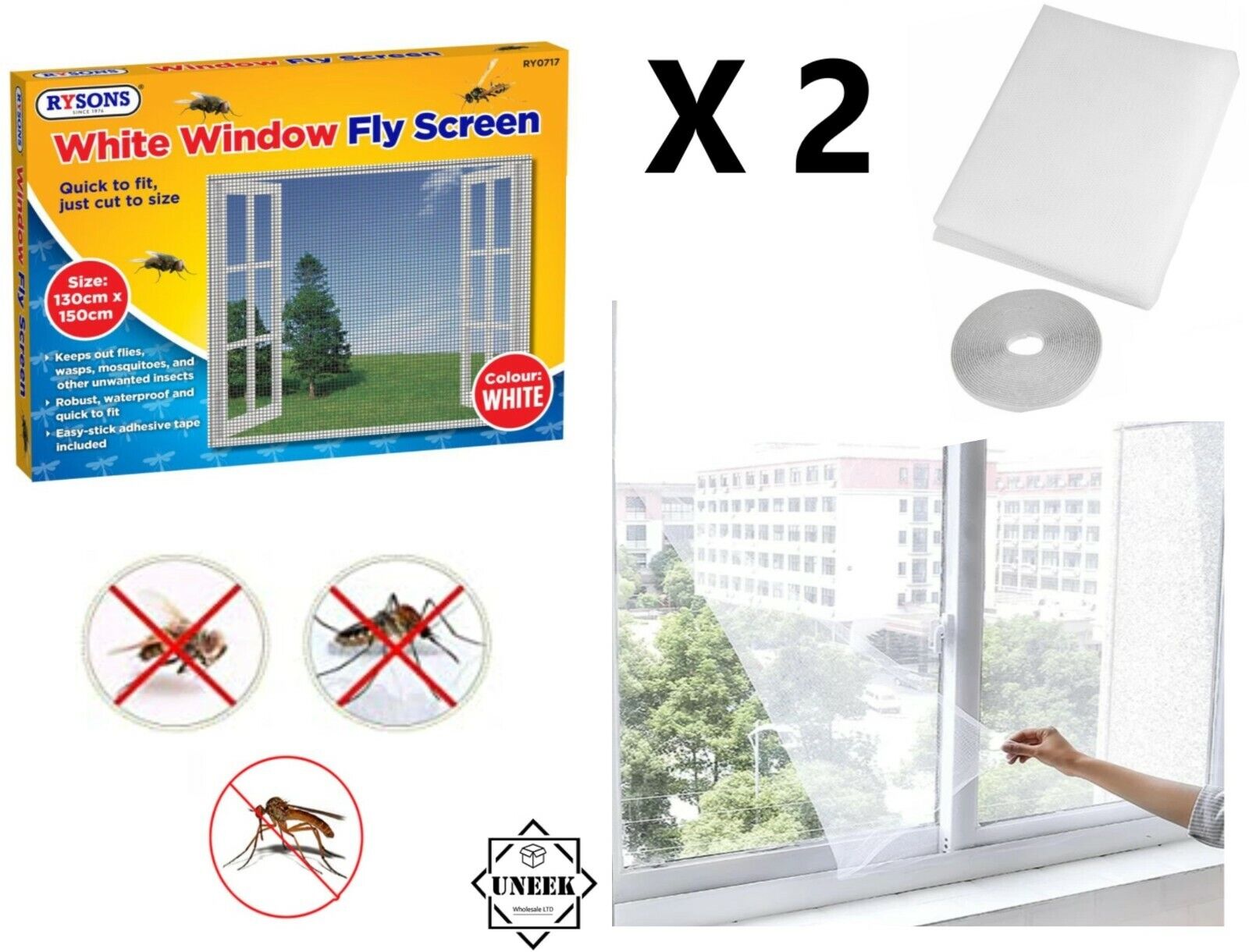 2 x White Net Curtain Insect Mosquito Window Screen Mesh Fly Bug Moth RY0717 UK