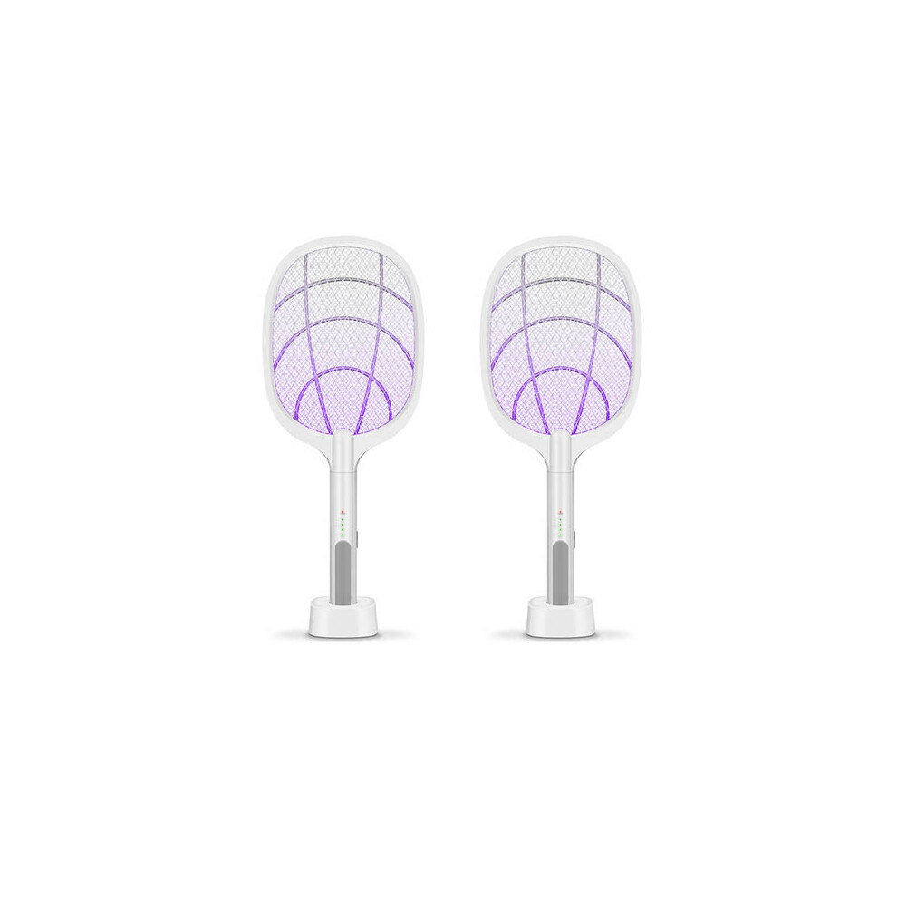 (White (2 Racquets)) Rechargeable Electric Mosquito Zapper Insect Racquet