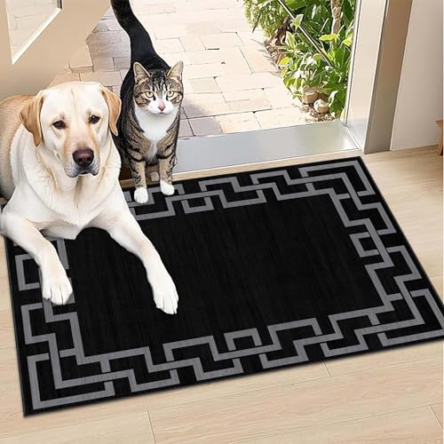 DEXI Dirt Trapper Door Mat Indoor, Non-slip Doormats Inside, Machine Washable, Super Absorbent Entrance Mats Soft Floor Carpet Rug, 60 x 90 cm, Black-Grey