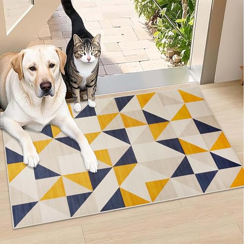 Indoor Doormat 32"x 48", Absorbent Front Back Door Mat Floor Mats, Rubber Backing Non Slip Door Mats Inside Mud Dirt Trapper Entrance Front Door Rug Carpet, Machine Washable Low Profile-Grey Geome