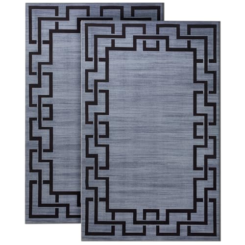 BedLooms Door Mat 60x110 cm 2 Pack – Non Slip Heavy Duty Indoor Outdoor muddy mats for dogs – Greek Key Style Print Welcome Front Doormat – Dirt Trapper Kitchen Floor Mat Inside Outside Doormats, Nico
