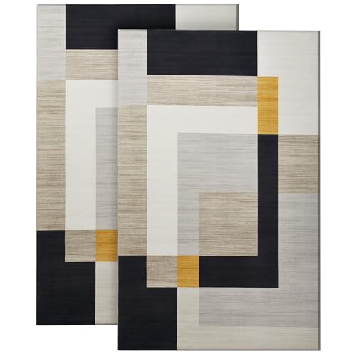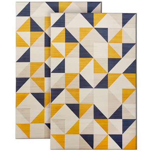 MIULEE Bath Mats Extra Soft Non Slip Absorbent Shower Mat Bathroom Rug Door Mat Inside Kitchen Rugs Carpet Washable for Bedroom Kitchen Entrance 70x120cm Yellow and Grey