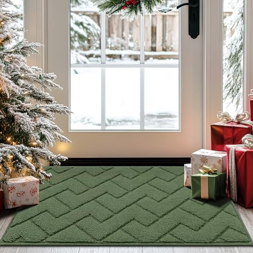 Biscpro Door Mats Indoor,Dirt Trapper Mat Absorbent Non-Slip Low Profile Doormat for Entrance,Inside,Kitchen,Front Door Mat Washable for Pets and Dogs—50x80cm,Green