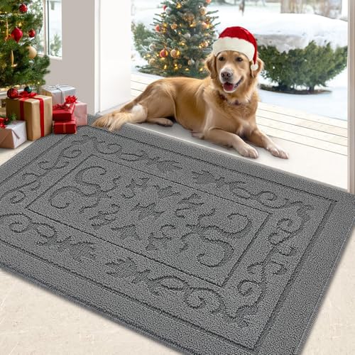 FONEYI Indoor Doormat Front Door Mat Non Slip Rubber Back Door Mats Magic Inside Dirt Trapper Entry Rugs Entrance Door Rug Machine Washable Door Carpet Mat for Entryway - Grey, 24"x 36"