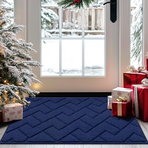 Biscpro Door Mats Indoor,Dirt Trapper Mat Absorbent Non-Slip Low Profile Doormat for Entrance,Inside,Kitchen,Front Door Mat Washable for Pets and Dogs—50x80cm,Blue