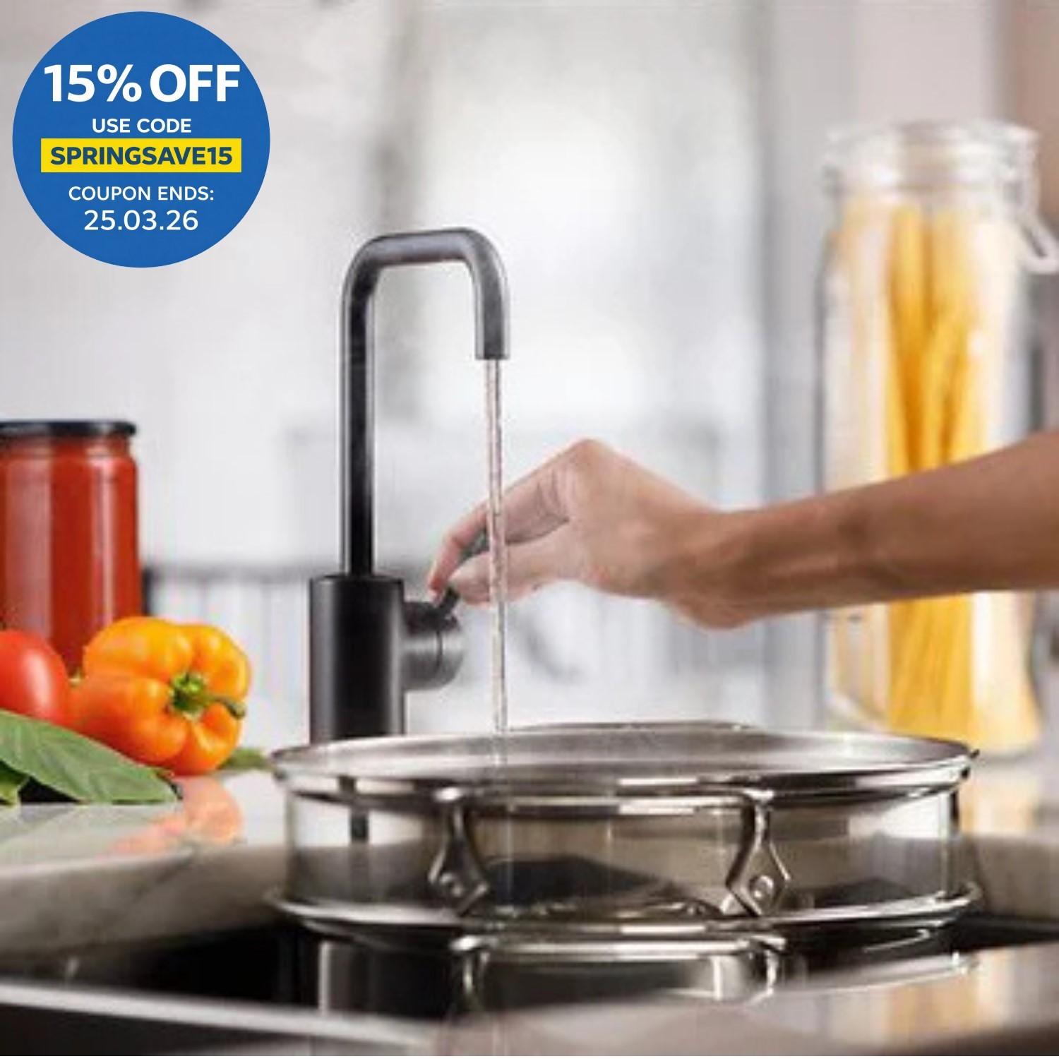 InSinkErator Moderno Black Instant Boiling Hot Cold Water Kitchen Tap 45396YISE