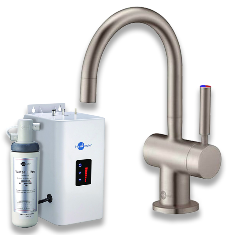 InSinkErator HC3300 Instant Hot Water and Filtered Cold Water Tap with Tank Kit, Brushed Steel