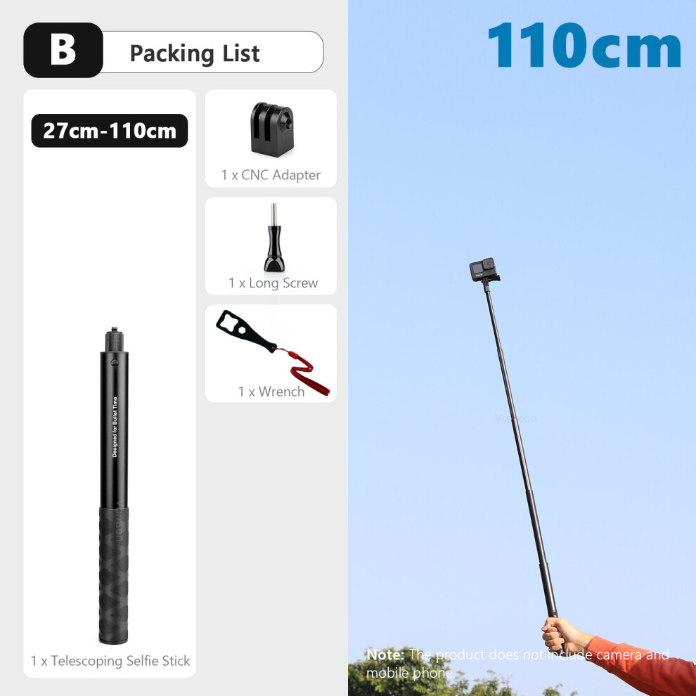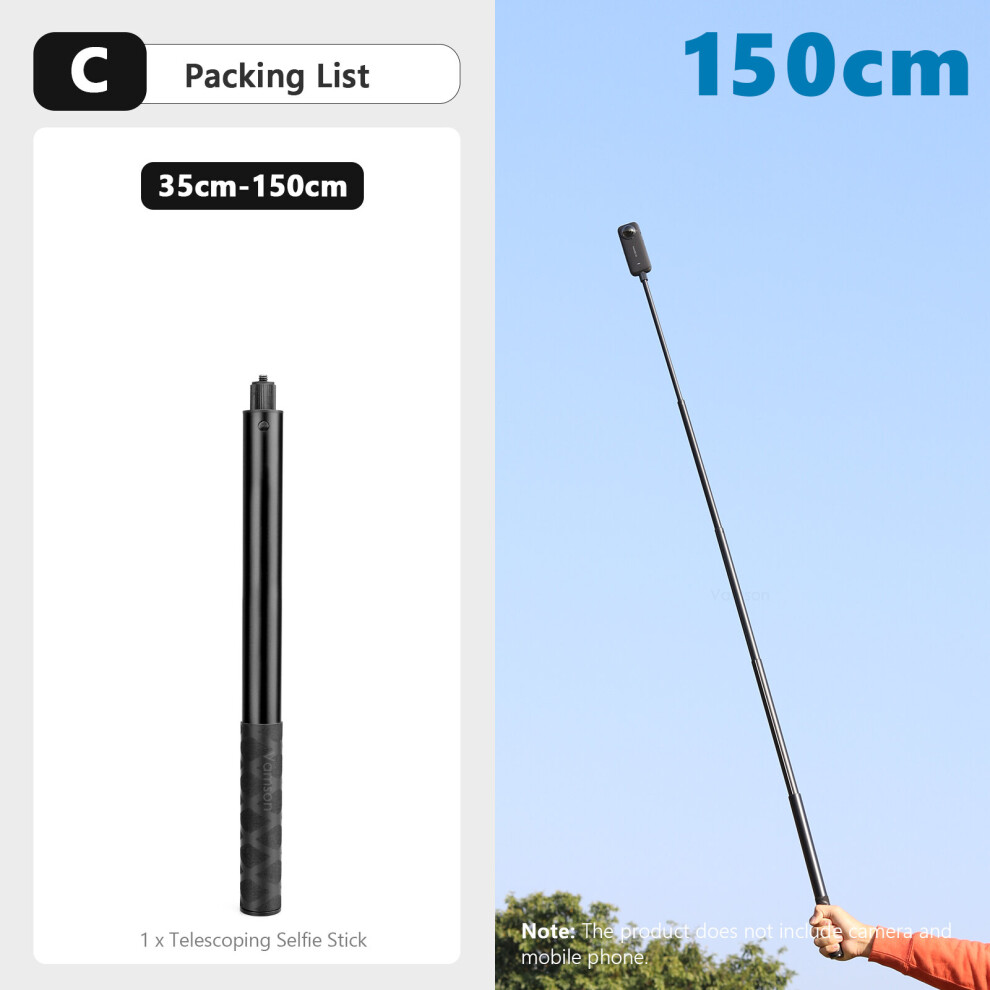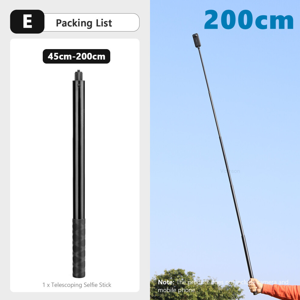 Flexible Telescopic Design Selfie Stick Kit, Aviation Aluminum Alloy For Sturdy And Stable Bullet Time Grip With Insta360 X, EVO, X3, X4, ONE X2, ONE