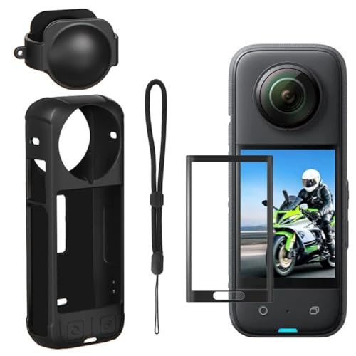 Protective Case with Lens Cap for Insta 360 X4 Accessories, Silicone Body Case Lens Cover Camera Protective Kit for Insta360 X4