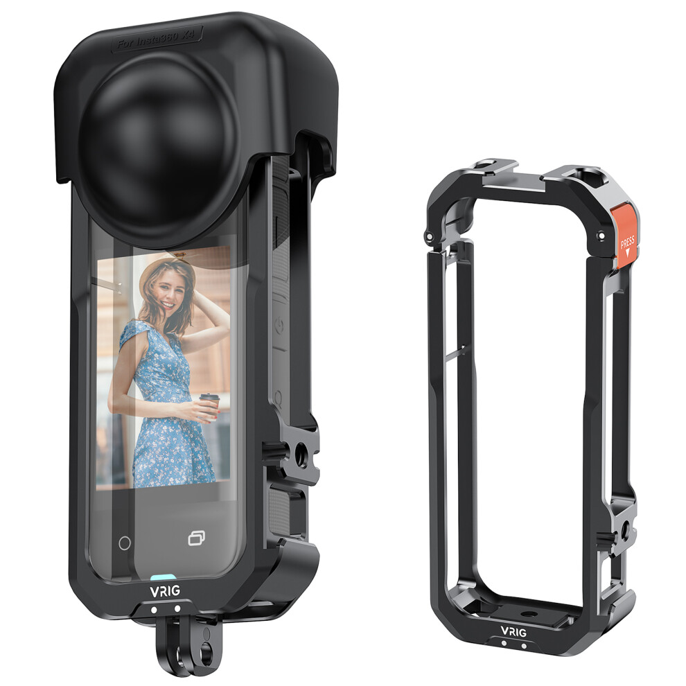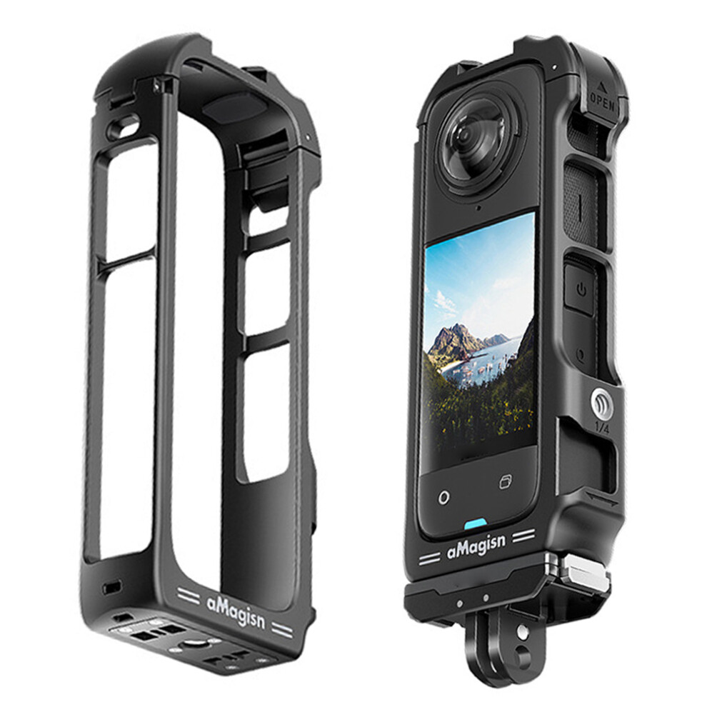 Aluminum Alloy Panoramic Camera Cage with Dual Cold Shoe Mounts for Insta360 X4 Vlog Accessories